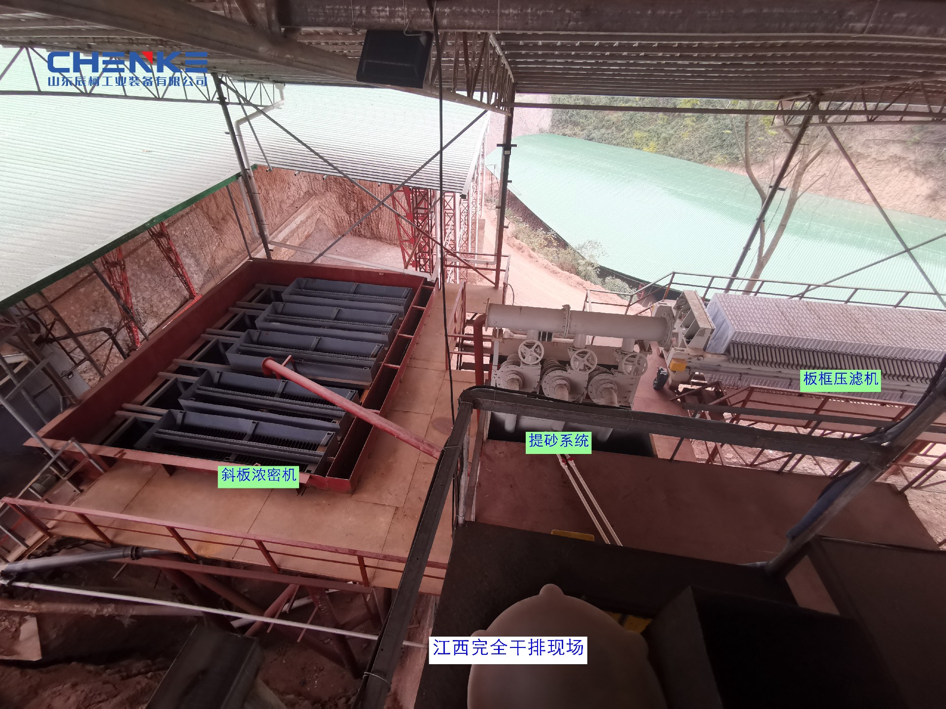 工作原理:整机包括上部箱体和下部锥体。上部箱体内有斜置的斜板组群,斜板组群由若干个相互独立的斜板单元构成,处理物料由斜板单元下端两侧进入,斜板组群上方有一贯通全长的溢流槽,槽底开有节流孔,造成外排溢流的水力背压,保证各斜板单元载荷均匀,防止径向紊流。侧向半逆流的给料方式,能使下沉的固体颗粒、上行的澄清液各行其道,互不干扰,沿斜板下滑的浓泥进入下部锥体后,压缩脱水,并靠重力外排,亦可借助于机械振动使浓泥顺利外排。